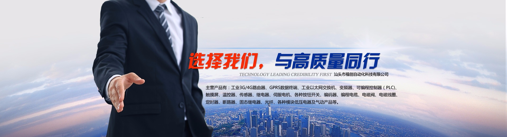 汕頭市福創(chuàng)自動化科技有限公司是一家集自動化元件的代理銷售與維修、自動化設備設計制造、自動化工程安裝改造、機電工程安裝改造、自動化機械設備設計與制造的企業?! ≈鳡I產品有:工業3G/4G路由器、GPRS數據終端、工業以太網交換機、變頻器、可編程控制器(PLC)、觸摸屏、溫控器、傳感器、繼電器、伺服電機、各種按鈕開關、編碼器、編程電纜、電磁閥、電磁線圈、定時器、斷路器、固態(tài)繼電器、光纖、各種模塊低壓電器及氣動產品等。